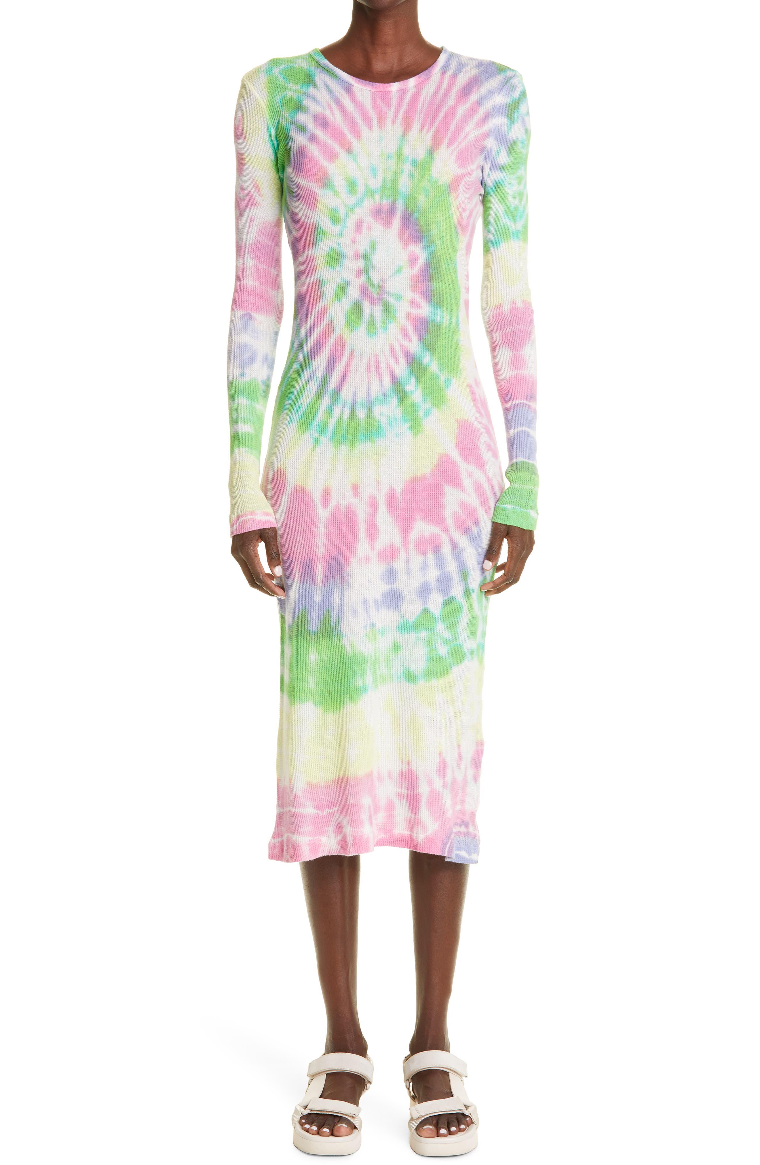 The Elder Statesman Tsunami Tie Dye Long Sleeve Waffle Cotton Cashmere Dress Nordstrom